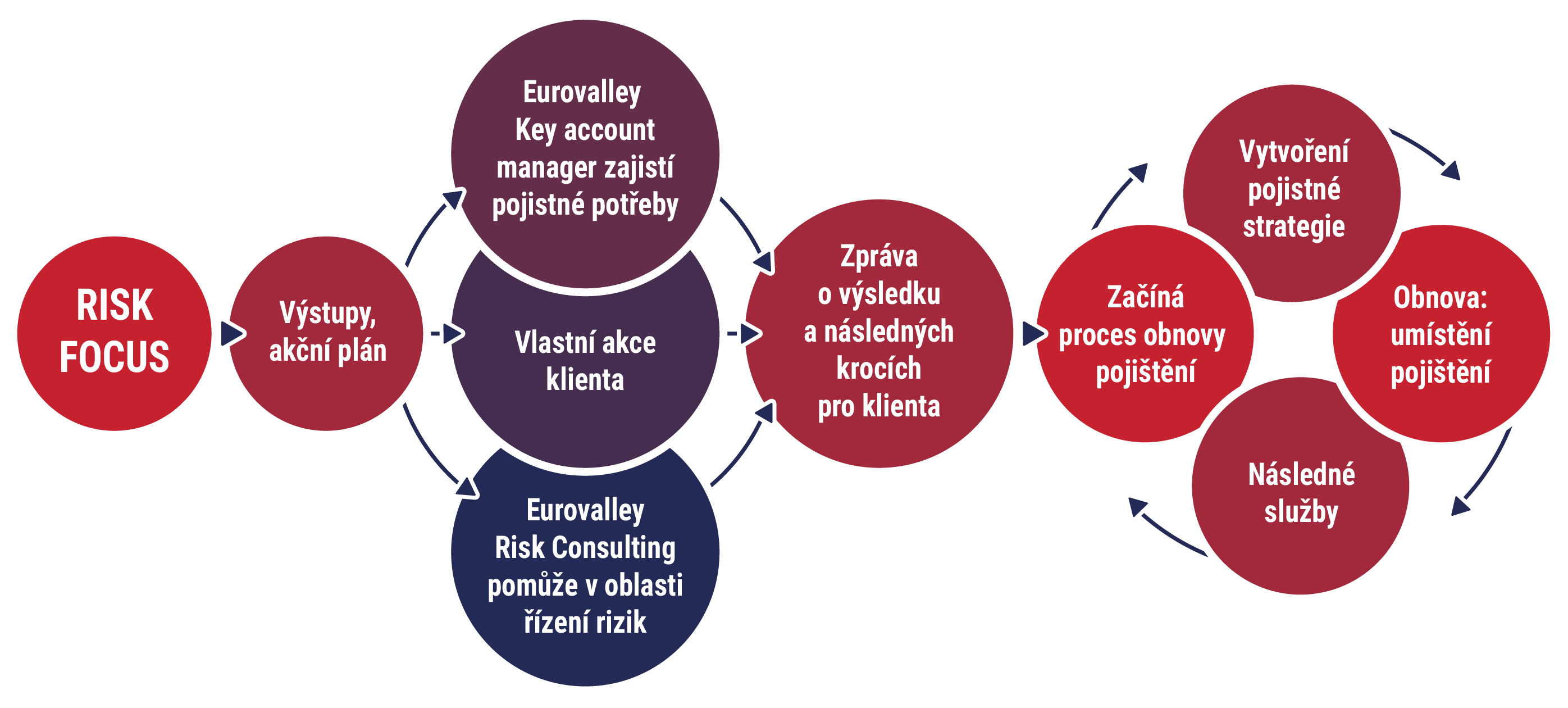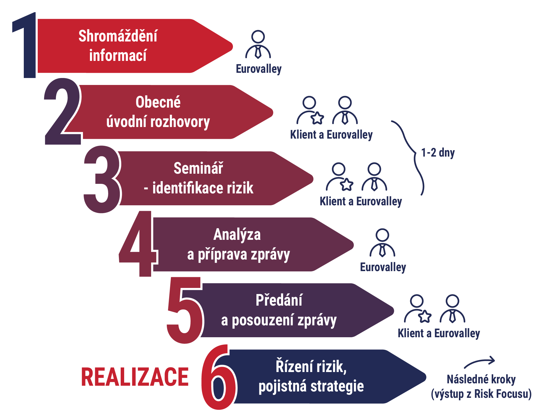 Průběh spolupráce Vás jako klienta a Eurovalley na mapě rizik vypadá následovně: